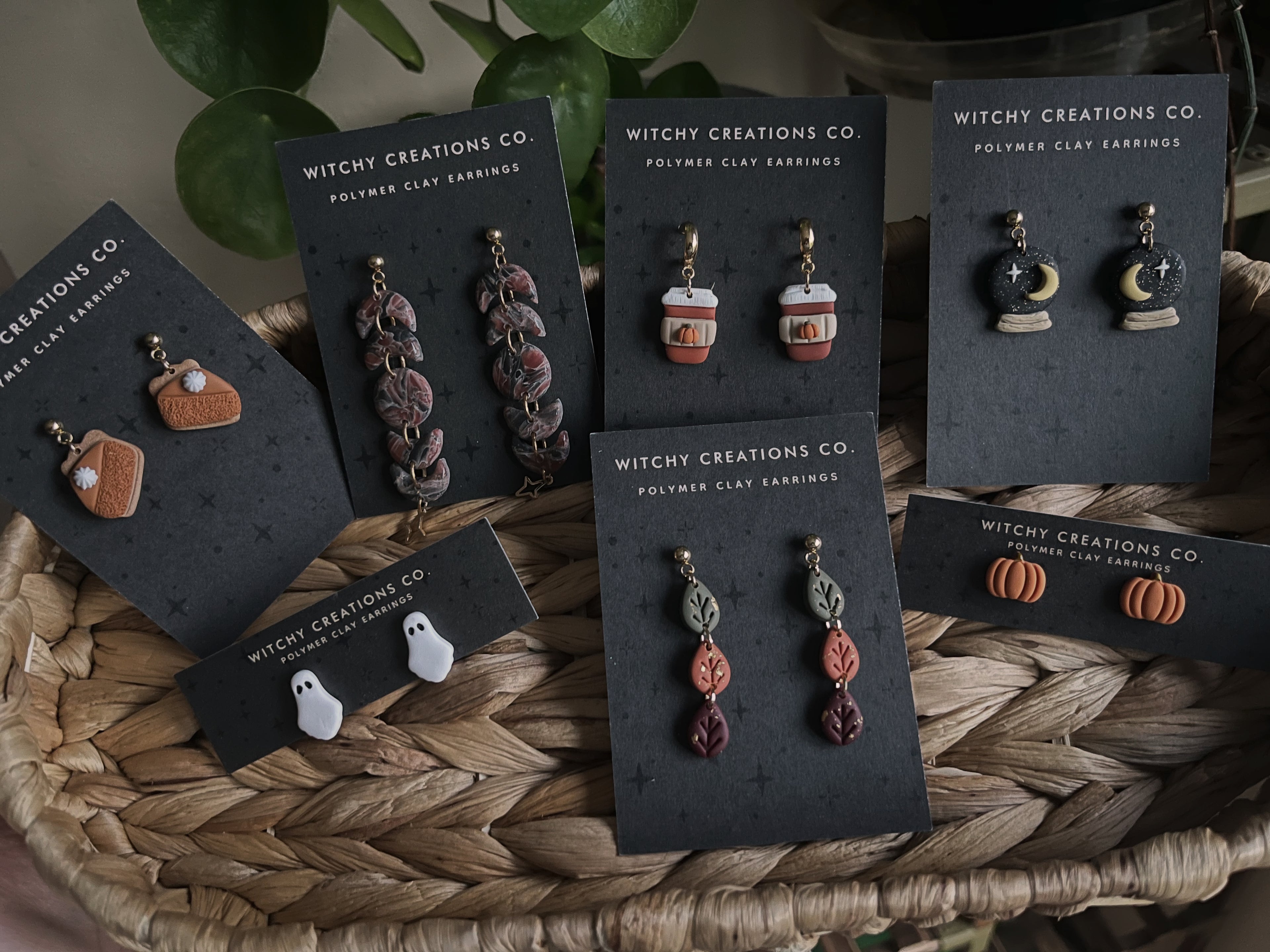 Kitty Jack-o-lantern Polymer Clay Dangle Earrings