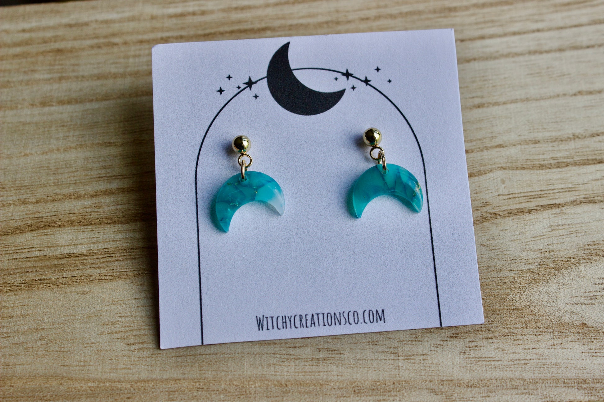 Mermaid Crescent Moon Stud Dangle Polymer Clay Earrings
