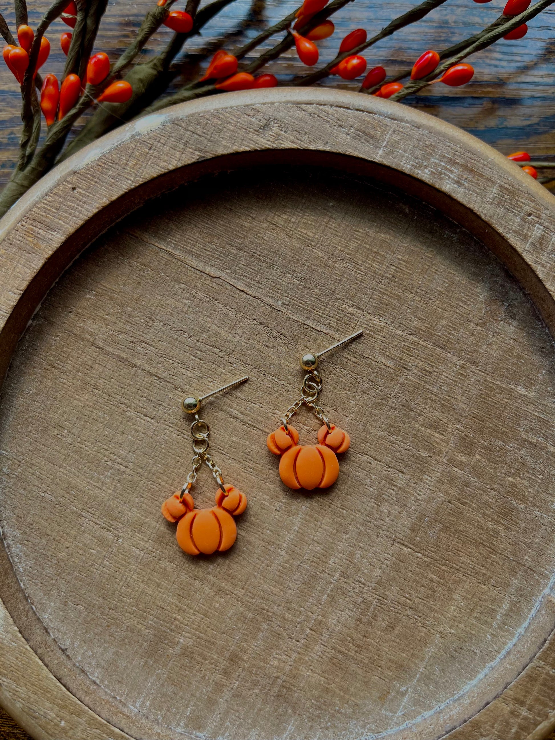 Mouse Pumpkin Polymer Clay Post Dangle Earrings
