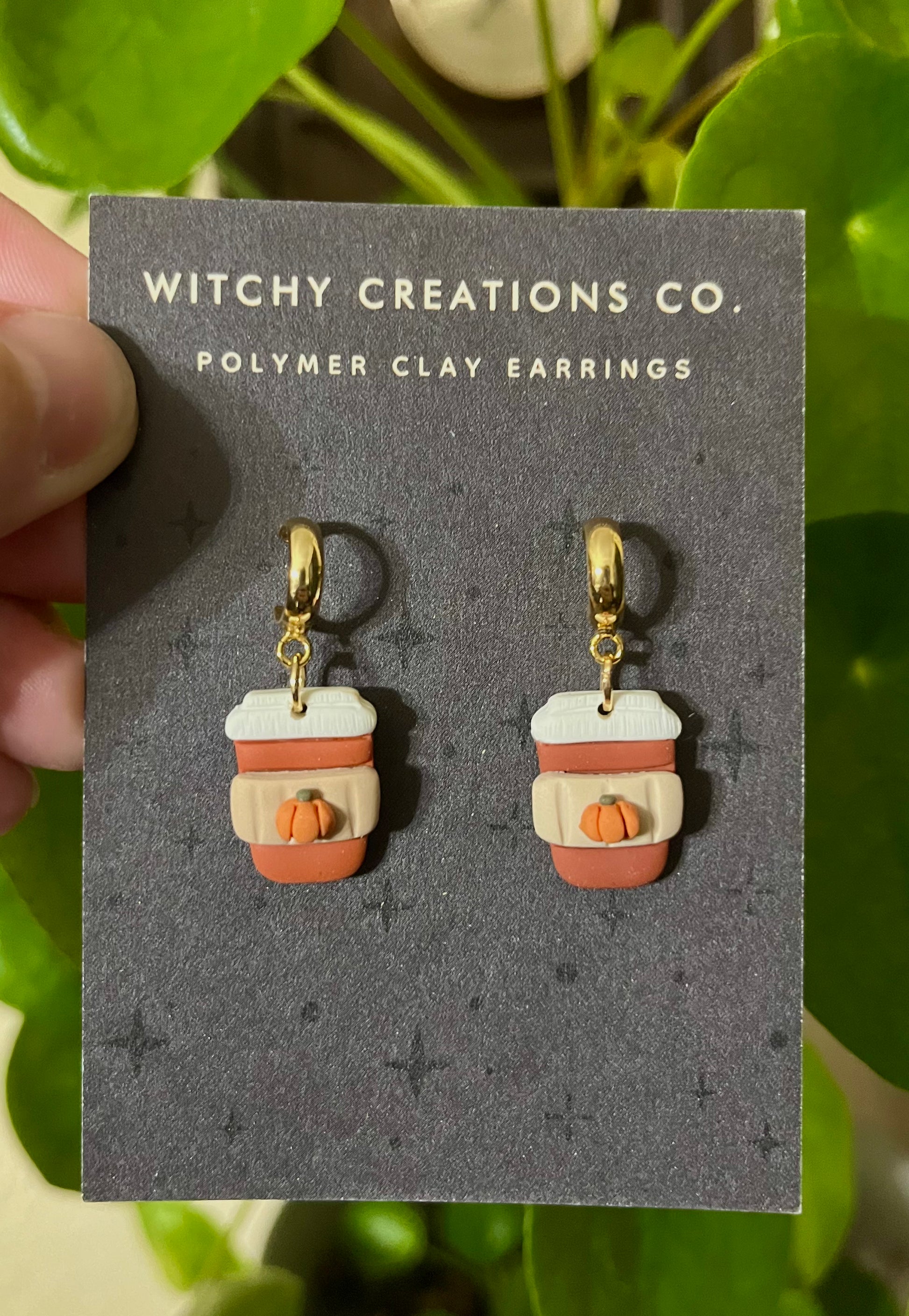 Pumpkin Spice Latte Half Huggie Polymer Clay Earrings